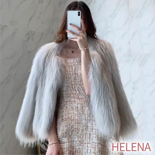 【海麗娜】韓版毛絨皮草外套 仿狐狸毛 短版上衣 毛衣外套 典雅純色V領寬鬆休閒百搭開衫衣 外套女【A2116】