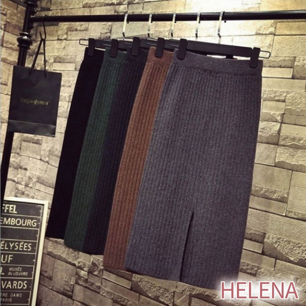 【Helena】開叉針織長裙 半身裙 針織裙 毛線裙 素色韓版高腰顯瘦中長版包臀裙 裙子 女裝【C223】
