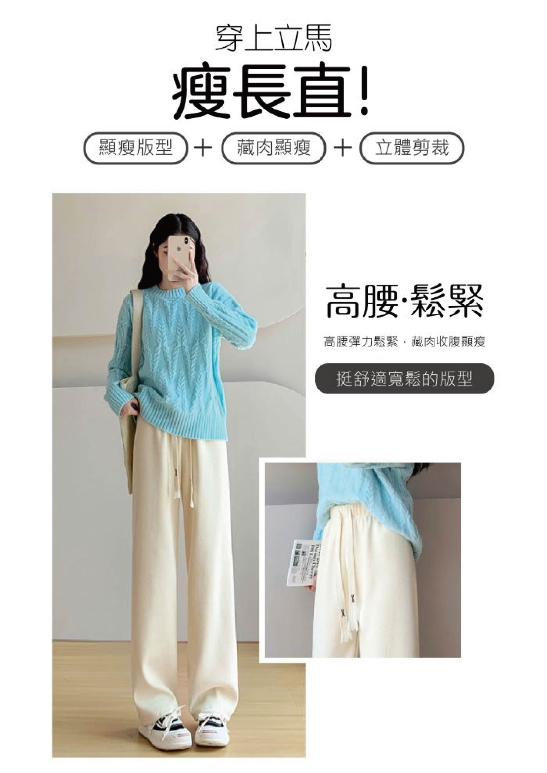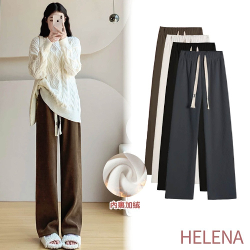 【Helena】燈芯絨加絨闊腿褲 拖地褲 直筒褲 運動褲 素色韓版秋冬高腰顯腿長百搭休閒褲 長褲 長褲女【C210】