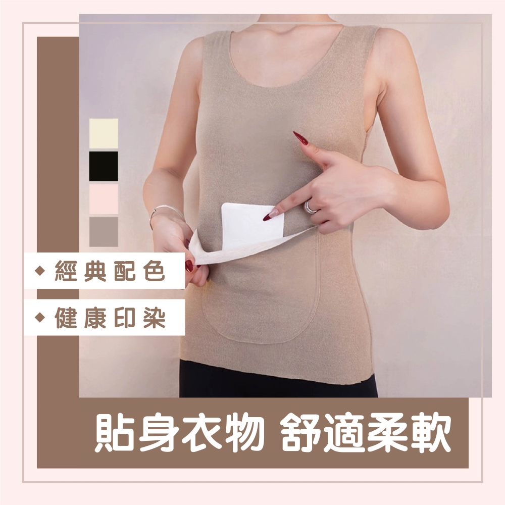 【Helena】發熱雙兜背心 口袋保暖內衣 發熱衣 德絨雙面磨毛修身顯瘦打底衫 暖宮護腰 背心女 女裝【A2207】
