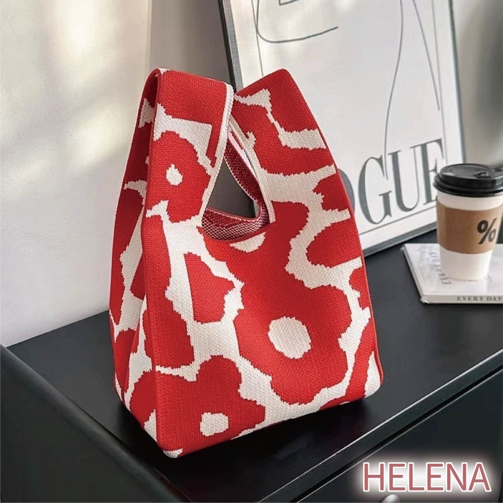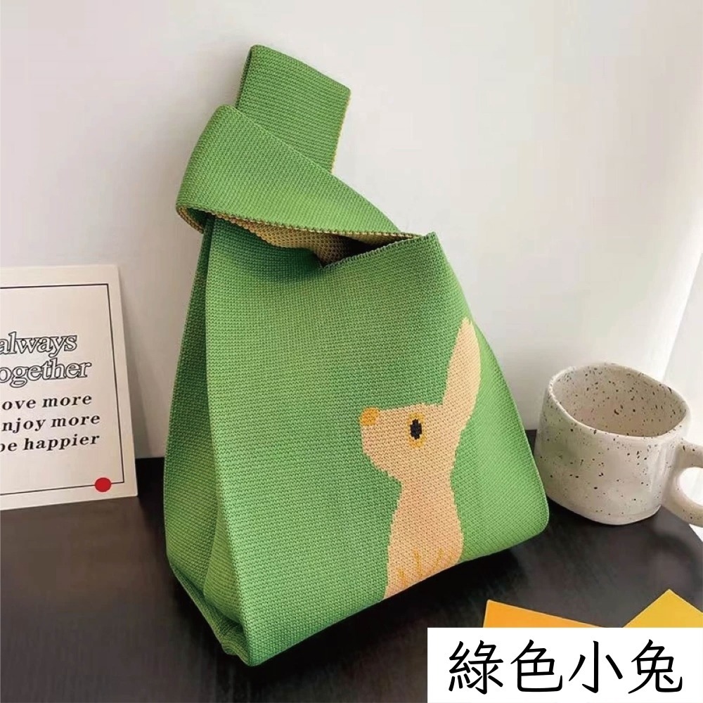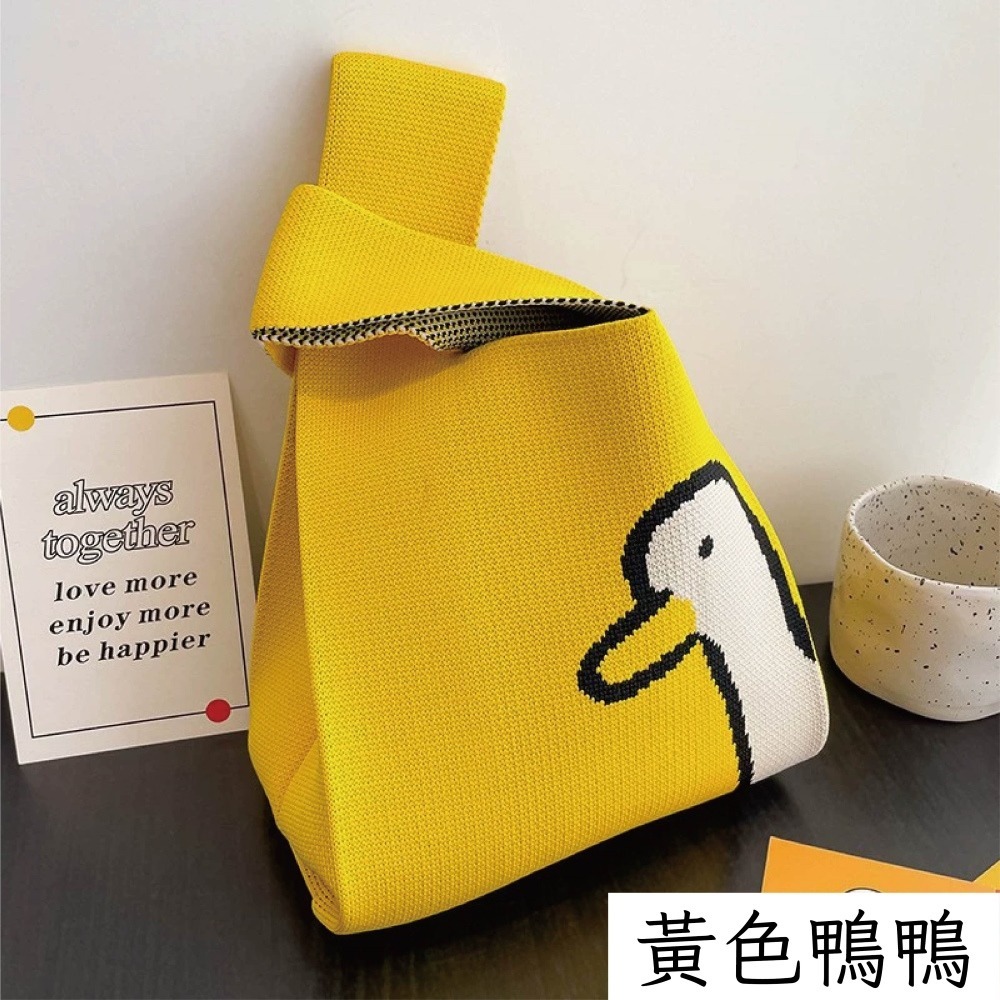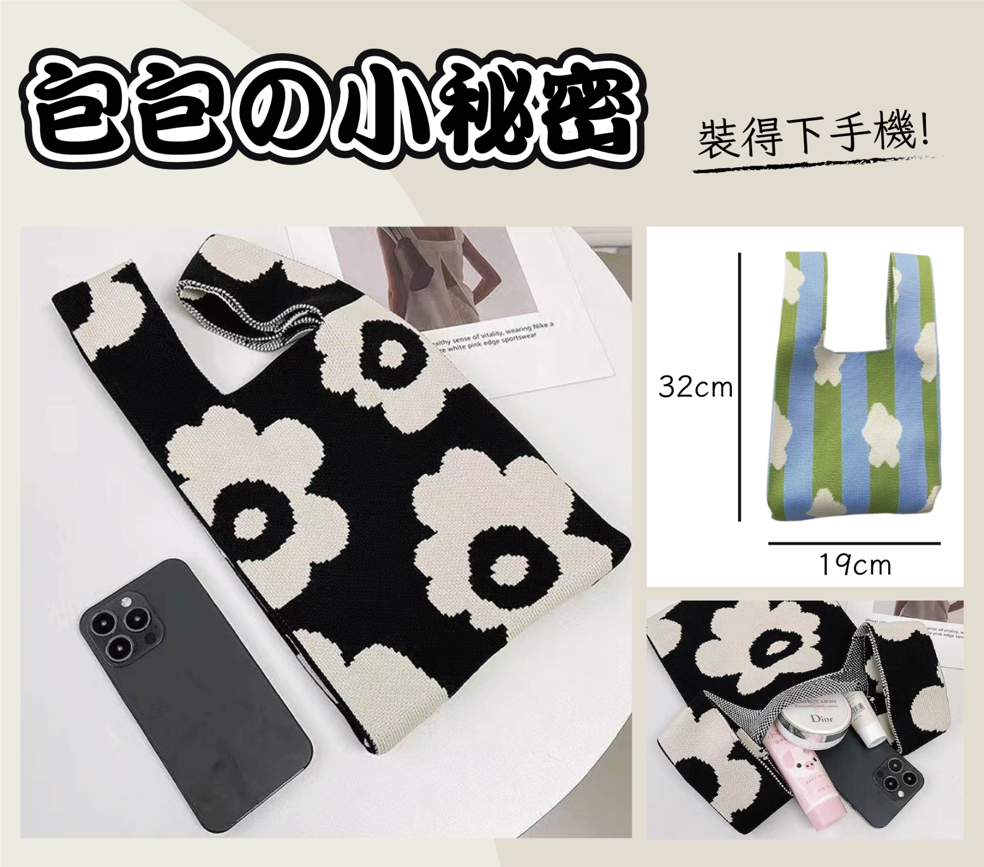 【Helena】針織毛線手提包 購物袋 便當袋 手腕包 印花小包 摺疊收納方便攜帶小提袋 單肩包 女包【D74】