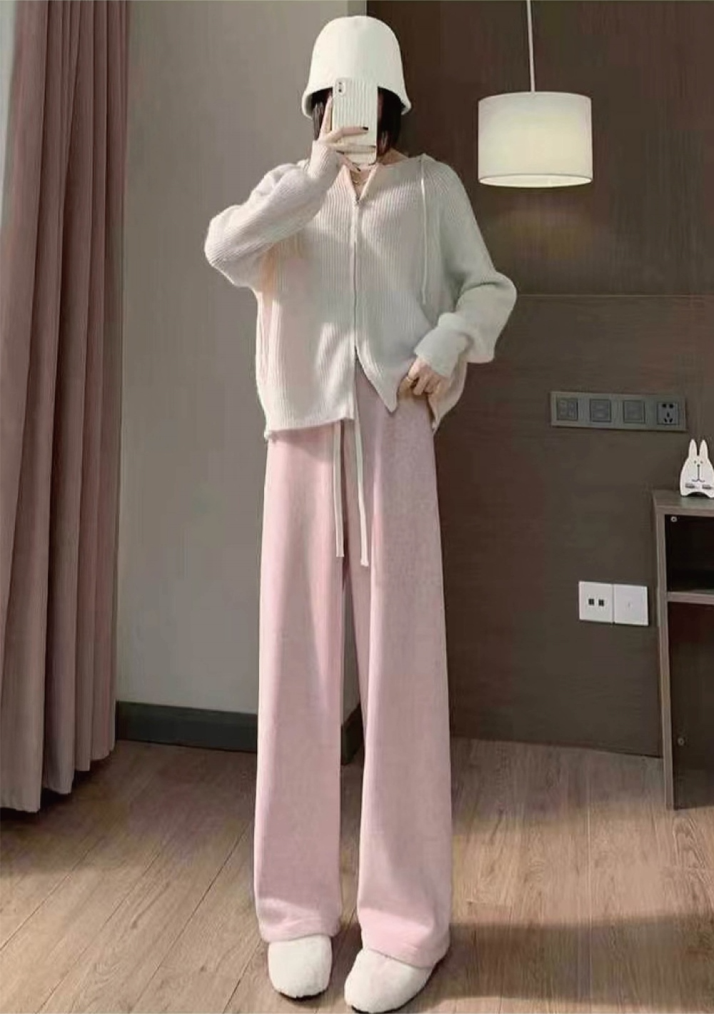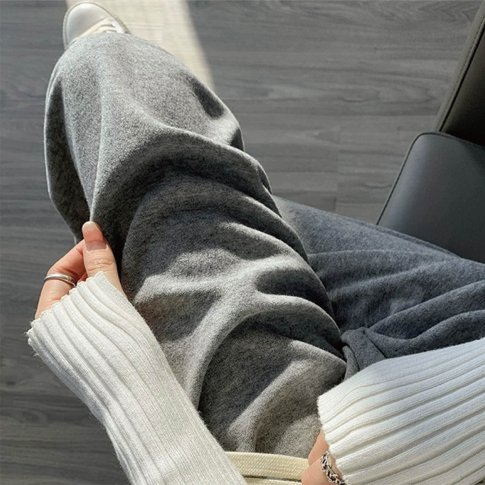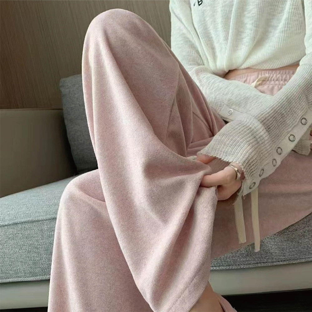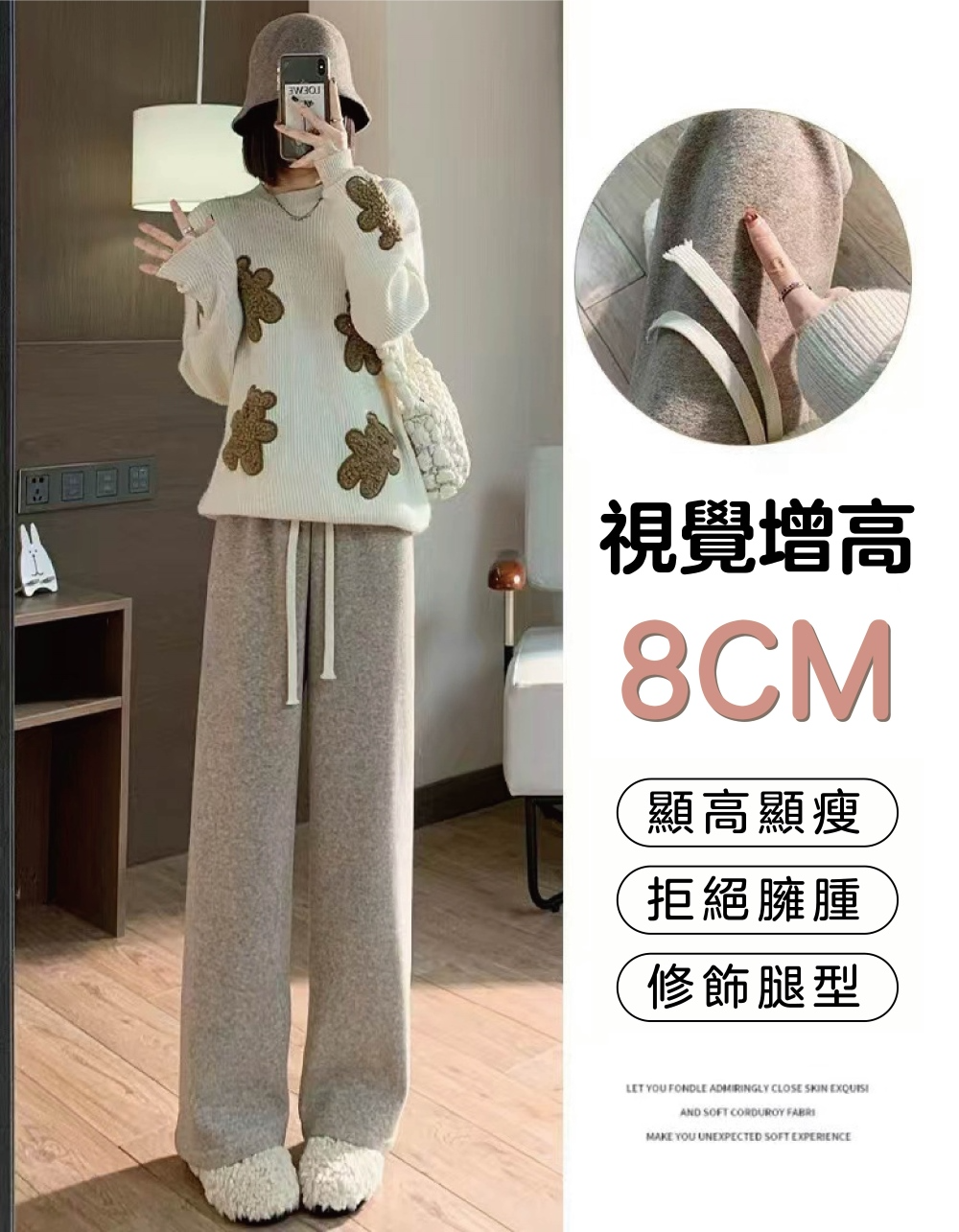 【Helena】加絨軟糯垂感抽繩寬褲 闊腿褲 直筒褲 拖地褲 高腰保暖寬鬆顯瘦休閒褲 褲子女 女裝【C230】