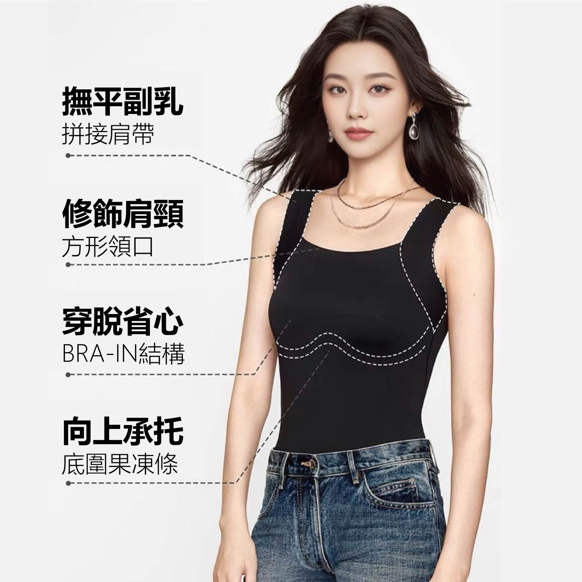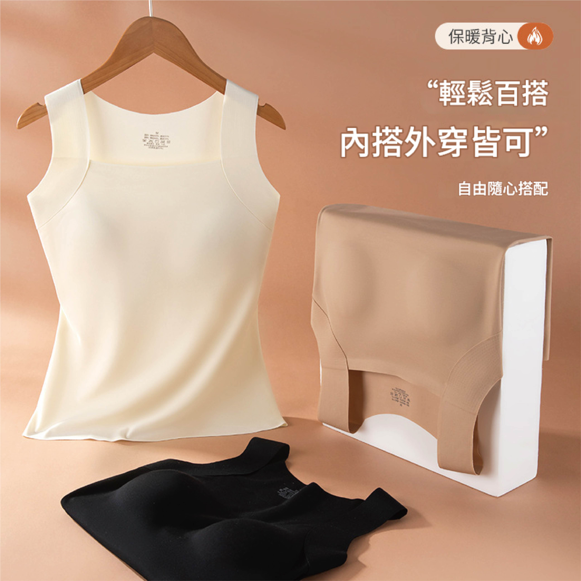 【Helena】保暖無痕寬肩帶背心 免穿文胸 無袖上衣 內衣 帶胸墊修身顯瘦打底衫 無痕美背 上衣女【A2224】