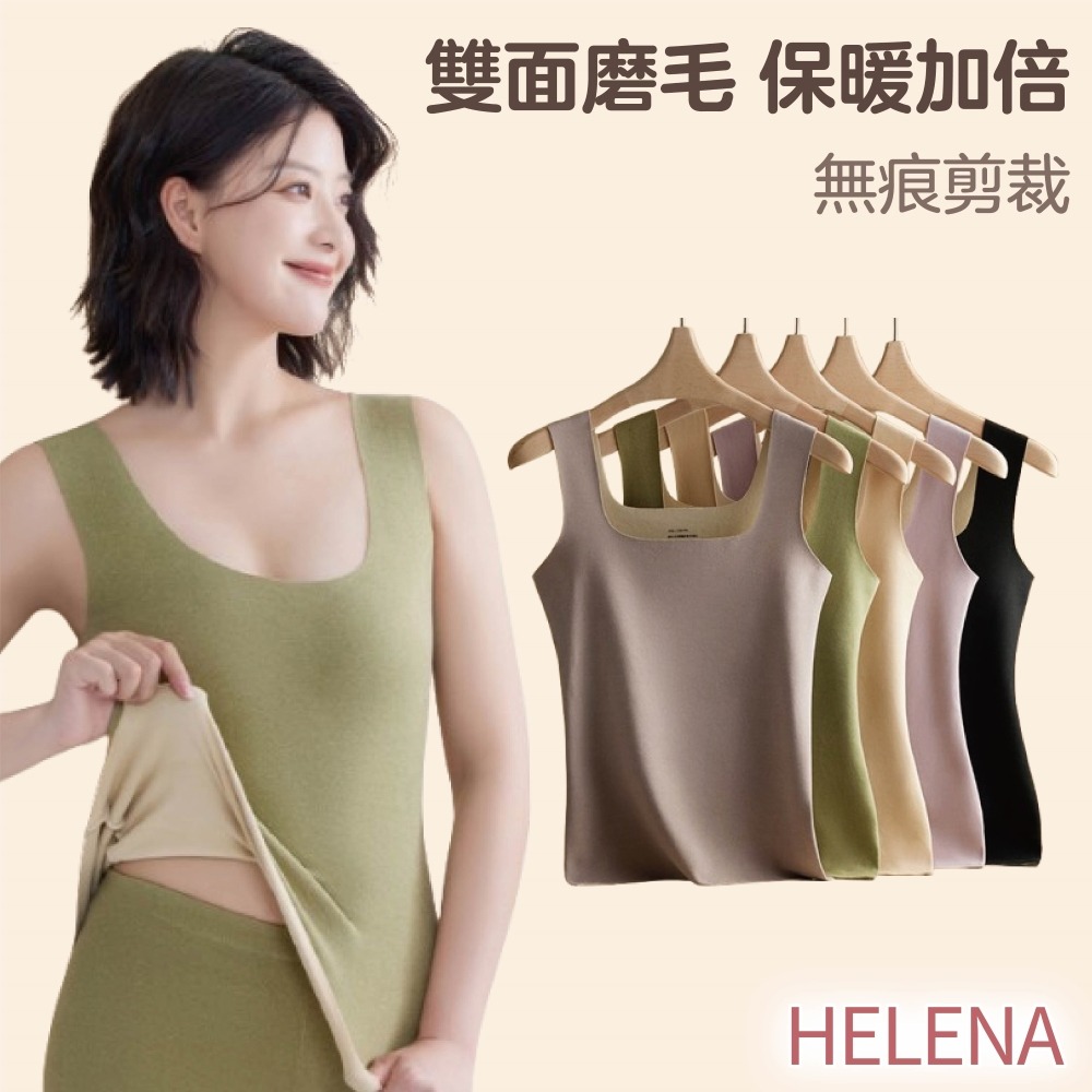 【Helena】德絨保暖無痕背心 發熱衣 內搭衣 方領背心 無袖上衣 加絨加厚修身打底衣 背心女【A2221】