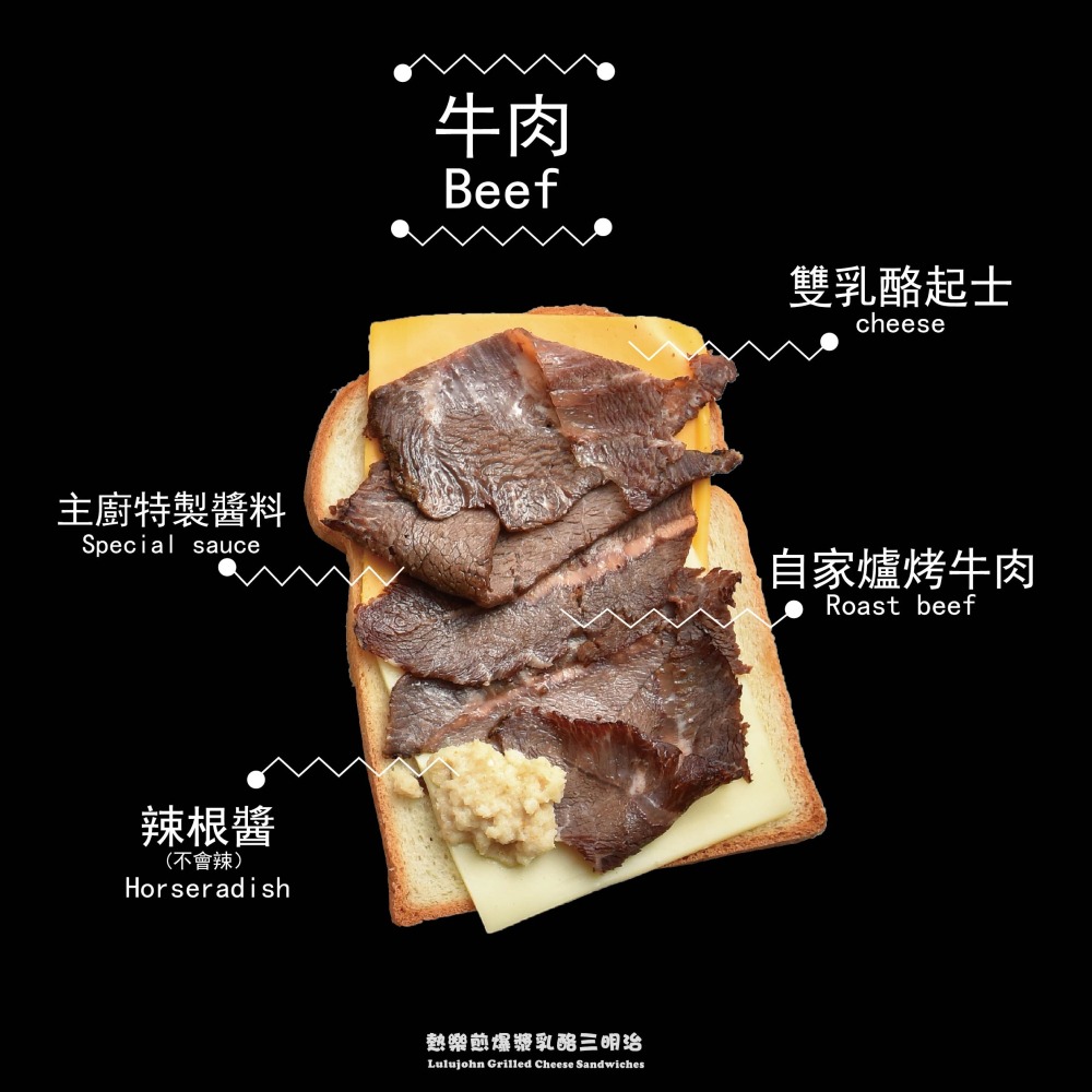 牛肉三明治使用的牛肉片是我們自家醃製爐烤再切片出來的