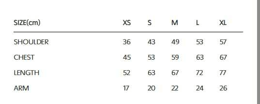 尺寸 : XS / S / M / L / XL 詳細尺寸 請見附加圖 尺寸表說明