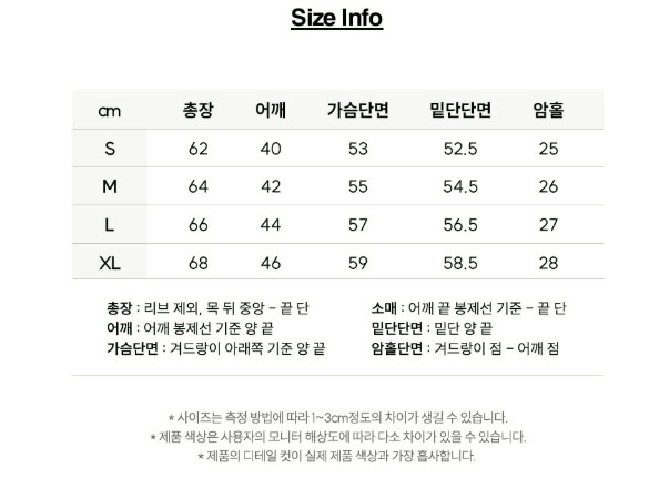尺寸 : S / M / L / XL (米白色沒有S,黑色沒有XL) 詳細尺寸 請見附加圖 尺寸表說明