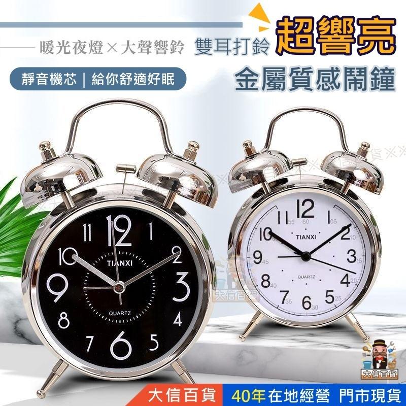 大信百貨》超大聲!! 銀色復古 雙耳打鈴鬧鐘 夜燈鬧鐘 簡約時尚鬧鐘 金屬打鈴鬧鐘 鬧鐘 宿舍 賴床 大鈴聲鬧鐘