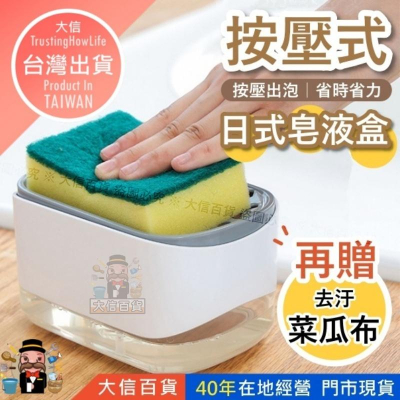 大信百貨》按壓式皂液盒【送菜瓜布❗️】起泡器 菜瓜布 按壓式 廚房用品 泡泡 按壓泡泡 出液盒 清潔盒
