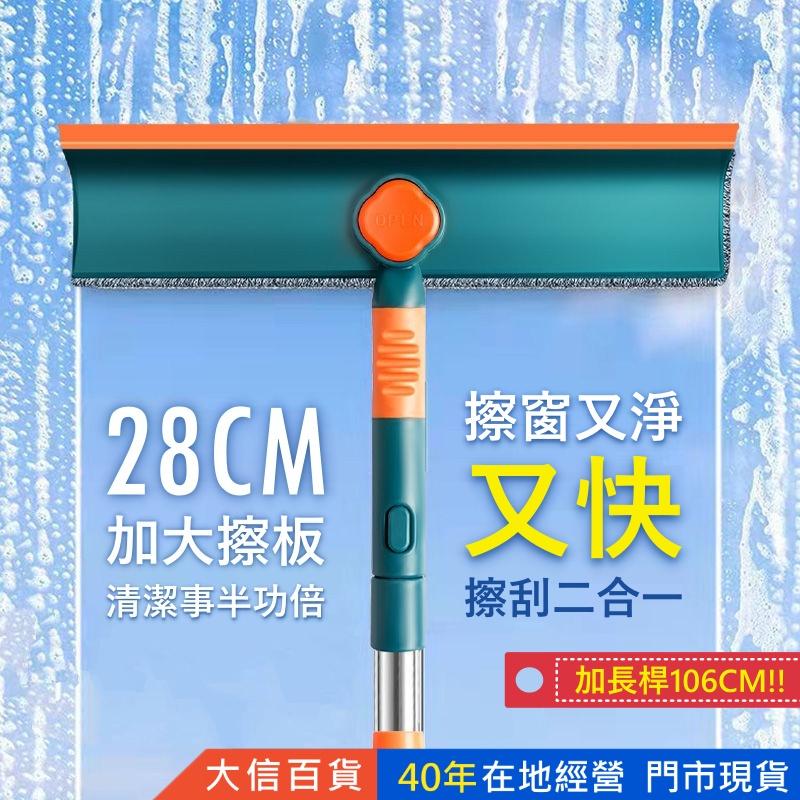 大信百貨》擦刮二合一 長柄擦窗器【28CM加大✨】擦玻璃器伸縮桿雙面擦窗神器家用刮水器樓房搽洗工具,擦窗器