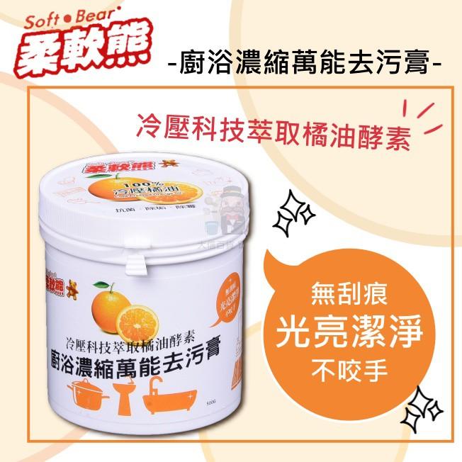 大信百貨》柔軟熊 廚浴濃縮萬能去污膏 500g 橘油酵素然 廚房清潔劑 去汙劑 清潔用品