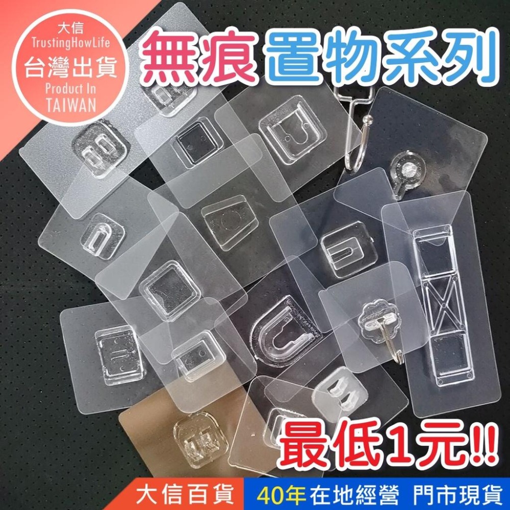 大信百貨》【最低價↘】子母扣 無痕 無痕貼 掛勾貼片 無痕貼片 置物架貼片 免釘 免打孔,透明貼片