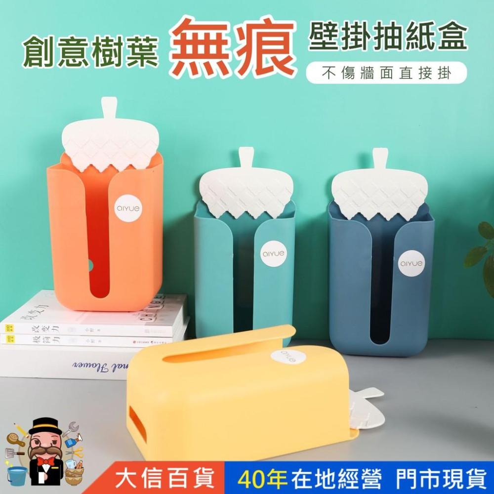 大信百貨》創意樹葉 無痕 壁掛抽紙盒 衛生間洗臉巾收納盒 無痕粘貼 家用紙巾盒 收納盒
