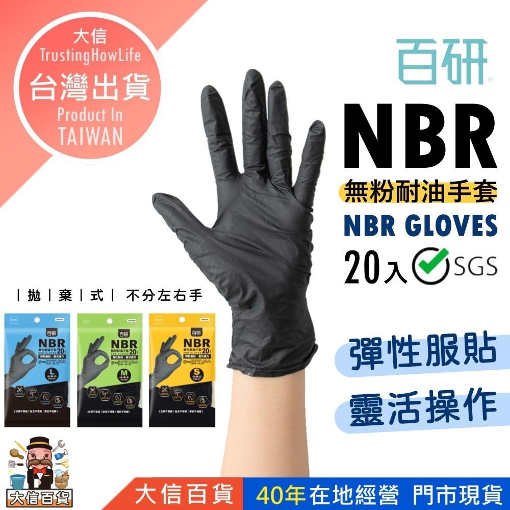 大信百貨》黑色NBR耐油手套【全網最低價🔥】百研 加厚款 防滑加強 指部止滑 無粉手套 NBR手套