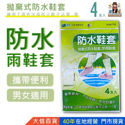 大信百貨》三花 拋棄式防水鞋套 /4支 H3673型 防雨鞋套 高筒鞋套 雨鞋套 高筒鞋套 防濕防髒,雨鞋套