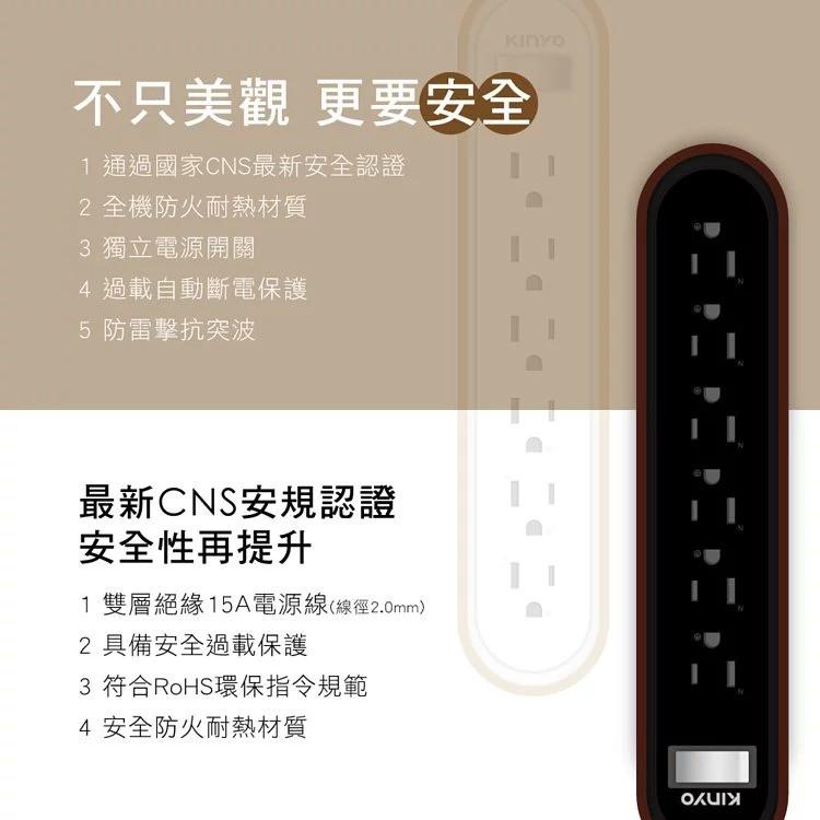 大信百貨》CGC316 1開6插 雙圓延長線6呎-現代簡約/自然木紋1.8M 過載保護延長線 插座 插座延長線