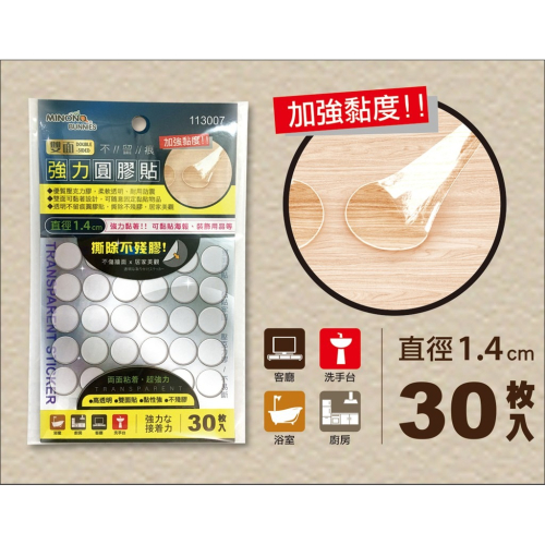 大信百貨》113007 米諾諾 雙面不留痕強力圓膠貼30入 雙面不留痕強力 無痕貼 無痕膠 黏著貼 固定墊 防震,圓膠貼