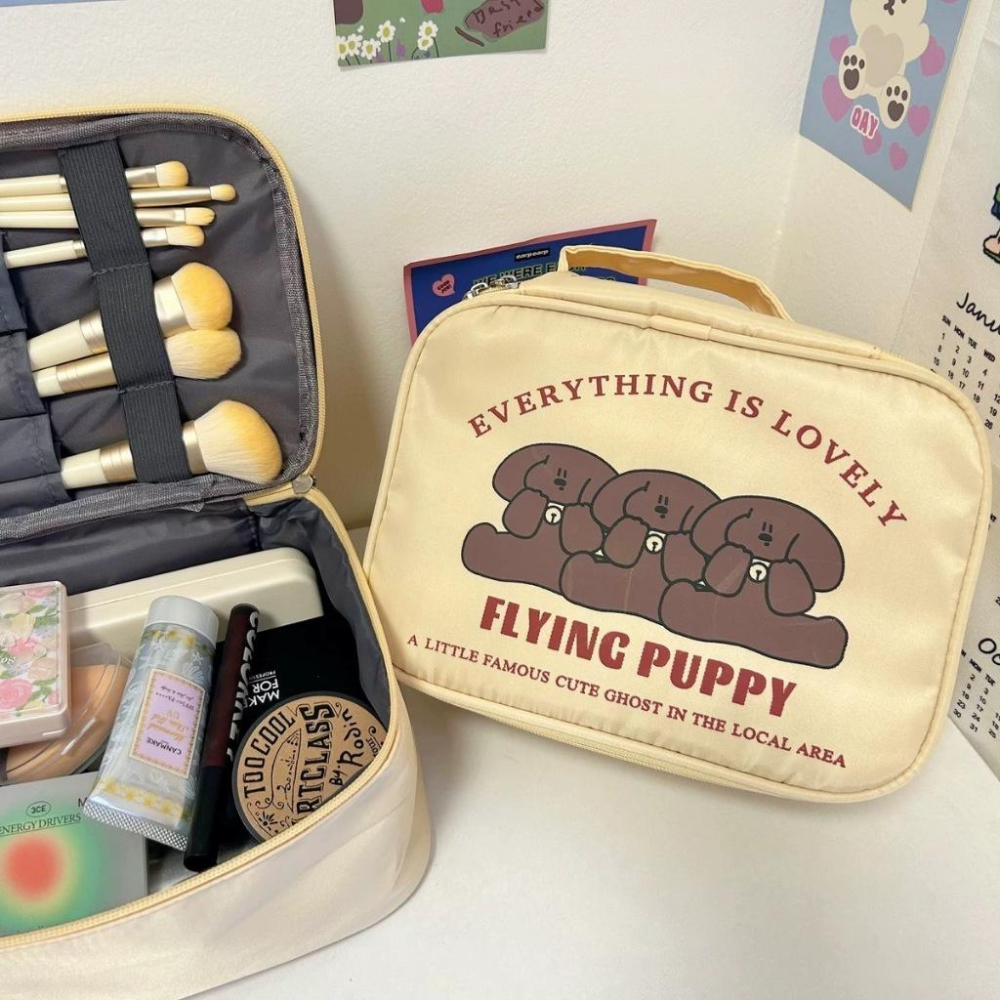 可愛咖啡修狗 大容量化妝包 ins 手提 便攜 收納包 洗漱包 出國 化妝收納 化妝品