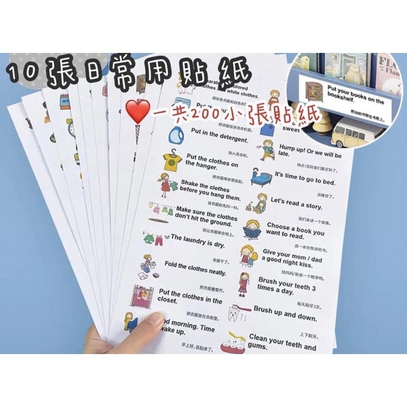 ✔️A4款10張英文日常用貼紙標籤(一組共200張小貼紙) 200句家庭英語日常口語 便利貼紙親子對話練習 兒童早教啓蒙英文貼 團購優惠💰 英文日常用貼紙 貼紙 版主