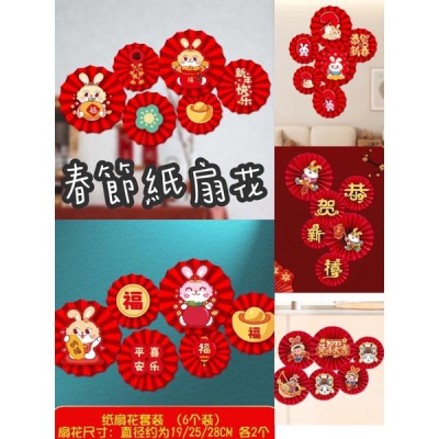 ✔️春節紅色紙扇花🌟套一組內6入 一包有6入紙扇花 +1= 6入紙扇花 💰 💜收到是一包6入個紙扇花💜 💜款式會隨機喔💜 🔴單套尺碼尺碼🔴 2個直徑40公分的,2個直徑30公分的,2個直徑20公分的 ✔️6個扇花組成一套,產品顏色圖