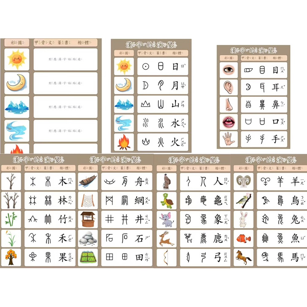 漢字演變圖卡、甲骨文教具、認字教材、中文啟蒙、國語教學資源、識字卡片、幼兒國語學習