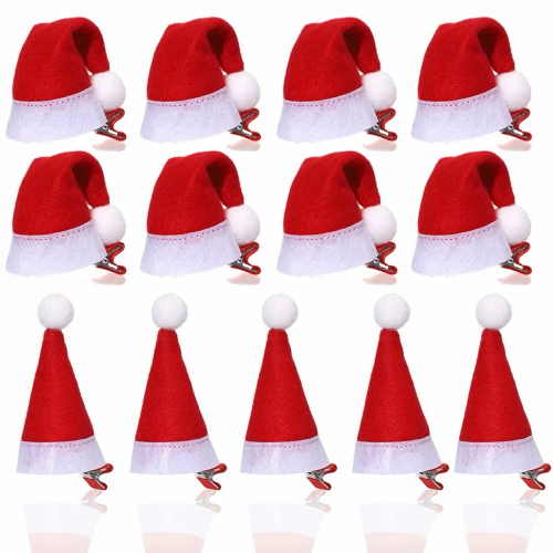 超可愛迷你聖誕帽髮夾,紅白經典配色搭配毛球裝飾,一秒變身聖誕小精靈✨