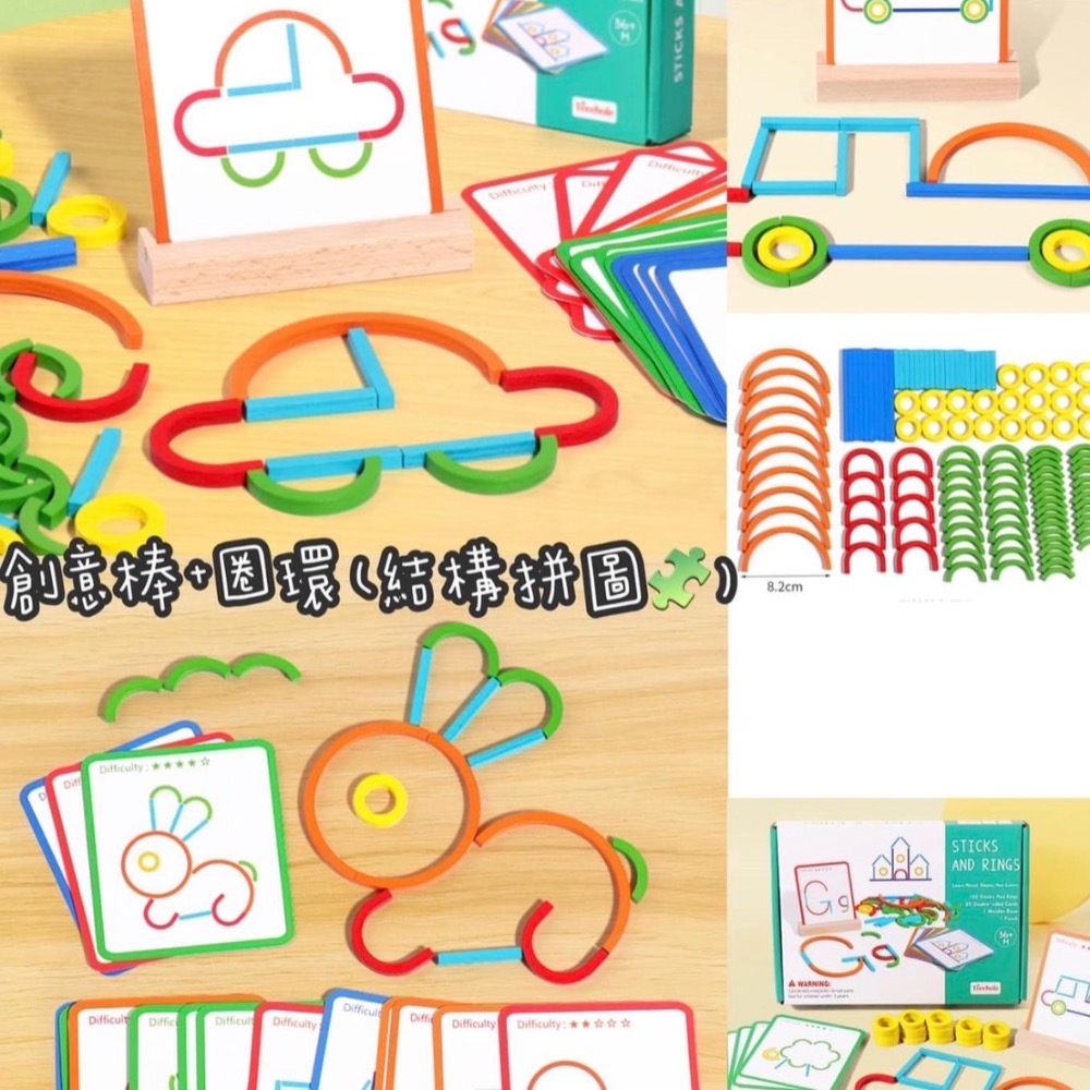 搭配題目卡進行操作,題目由易到難,觀察擺放位置進行拼搭,認識空間、形狀、顏色對應概念,
