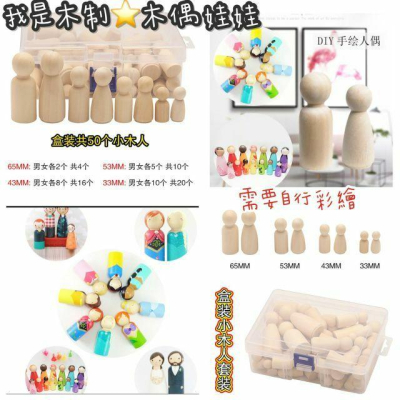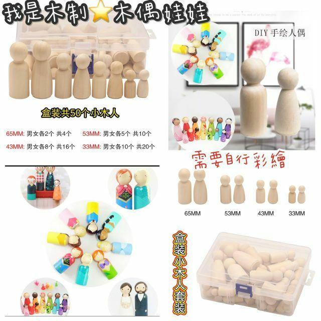 木偶娃娃⭐️木製款 可以自行彩繪,上色,作品 原木木偶娃娃組 ➕1= 50個木偶娃娃 ✔ 每盒包含【50個】木偶娃娃 木偶尺寸:33mm~63mm 尺碼大小混裝+加上一個收納盒 ✔ 包裝:塑膠收納盒 可自行彩繪、勞作 ⚠️注意事項: 收納盒屬加厚塑膠料,但終難免於運送中產生刮痕或碰撞而毀損,如有上述情形發生,若不影響木偶娃娃使用,恕無法退換貨,介意請繞道🙏