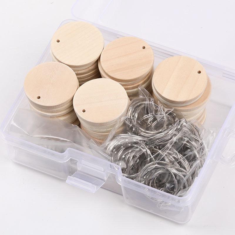 實木鑰匙圈 吊飾一盒50片實木50個金屬環 鑰匙圈 可彩繪鑰匙圈 鑰匙圈 木製鑰匙圈