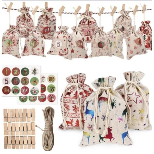聖誕倒數禮物袋,24入 中國製 小朋友你們知道聖誕節在哪一天嗎? 12/25號!! 所以我們從12月的第一天就可以開始倒數囉,每天都可以打開專屬的禮物袋,一邊拆禮物、一邊期待聖誕節的到來哦! 禮物袋可以放小禮物或是小紙條寫上今天要挑戰的小任務,作為節慶前的鋪陳,讓孩子在等待節日的時候慢慢認識聖誕節的由來,也更等不及要趕快過聖誕節哦! 一組💰 規格介紹: 約10x15cm 內容包含: 麻繩x10米, 麻袋x24, 夾子x24, 貼紙x24枚//158$ 預購 🔴🔴🔴預購🔴🔴🔴預購🔴🔴🔴 ✌🏽✌🏽✌🏽購買前請先登入系統✌🏽✌🏽✌🏽