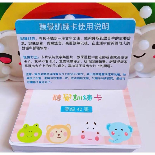 ✅聽覺訓練卡;訓練幼兒語言短句理解能力;繁體卡/ 一組共40張 聽覺感受卡,訓練幼兒語言短句理解能力 利用文字敘述,讓孩子更了解喜怒哀樂❤️ 在孩子聽到一段文字後,能夠獲取到語言中的主要信息,訓練聽覺,理解語言。 此教具為聽覺訓練卡,純文字無圖片。 教學過程中,由老師拿卡片,孩子不看卡片。 共40張,尺寸:13*8.5公分 若有分款式商品請註明款式,未備註者隨機出。 因海外商品經過多次運送,難免外盒會些許受損 可接受者在留言訂購唷! 款式&顏色若遇缺貨,隨機出貨。