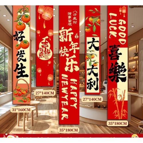 商品:春節佈置 春節直式裝飾聯5件組春 過年拍照背景