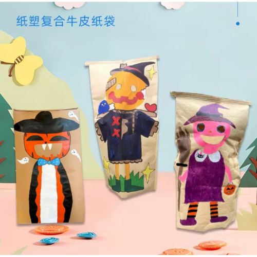 孩子可以先用彩色筆自由發揮,設計自己專屬的怪獸、巫婆、南瓜人、木乃伊或任何天馬行空的角色,完成後套上袋子,就能立刻變身派對主角✨。