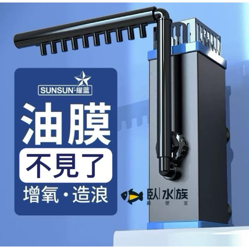 【臥水族】【台灣110V】 森森 耀藍油膜處理器魚缸除油污器水族箱雨淋內置過濾器增氧泵過濾