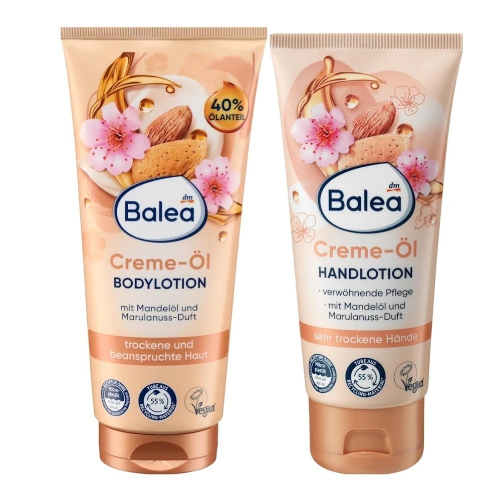 Balea 乳霜油身體乳液杏仁油可長期呵護乾燥、緊張的肌膚,使其恢復新的柔軟度。