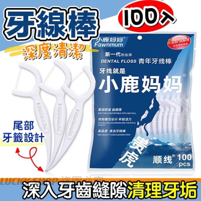 🍀台灣現貨🍀牙線棒 牙線 100入 小鹿媽媽牙線棒 細滑牙線棒 口腔清潔牙線 隨身牙線 剔牙牙線 不易斷 牙線籤 牙
