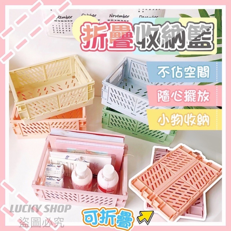 🍀台灣現貨🍀折疊收納籃 可疊加收納籃 小收納籃 折疊籃 馬卡龍收納籃 桌面收納籃 雜物籃 置物籃 摺疊籃 收納盒 野