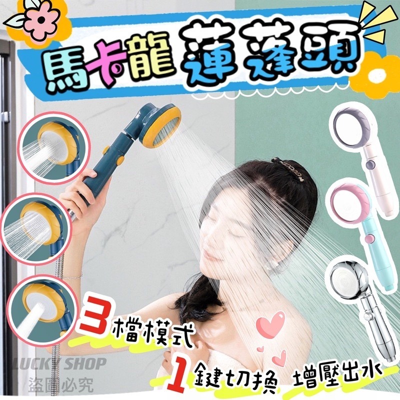 🍀台灣現貨🍀馬卡龍蓮蓬頭 三段式蓮蓬頭 4分接口蓮蓬頭 蓮蓬頭 一鍵止水 加壓蓮蓬頭 花灑頭 淋浴頭 浴室蓮蓬頭 花