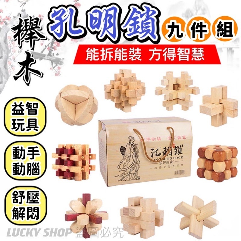 🍀台灣現貨🍀孔明鎖9件組 孔明鎖 魯班鎖 益智玩具 兒童益智孔明鎖 拼裝玩具 拆裝玩具 解鎖玩具 積木玩具 拼裝孔明