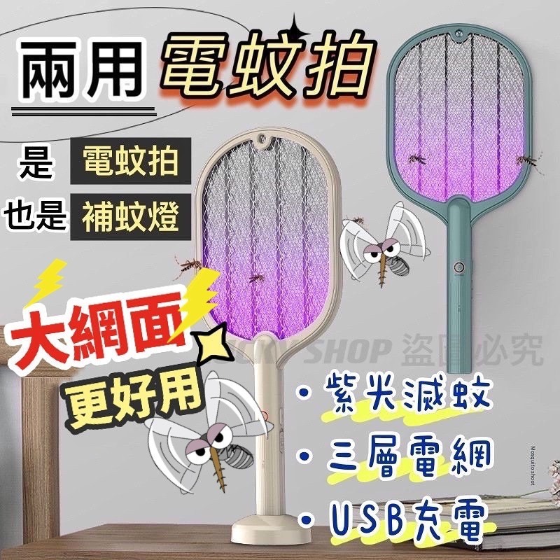 🍀台灣現貨🍀兩用電蚊拍 電蚊拍 補蚊燈 滅蚊燈 二合一補蚊器 紫光捕蚊 雙用電蚊拍 USB充電電蚊拍 夜間自動滅蚊