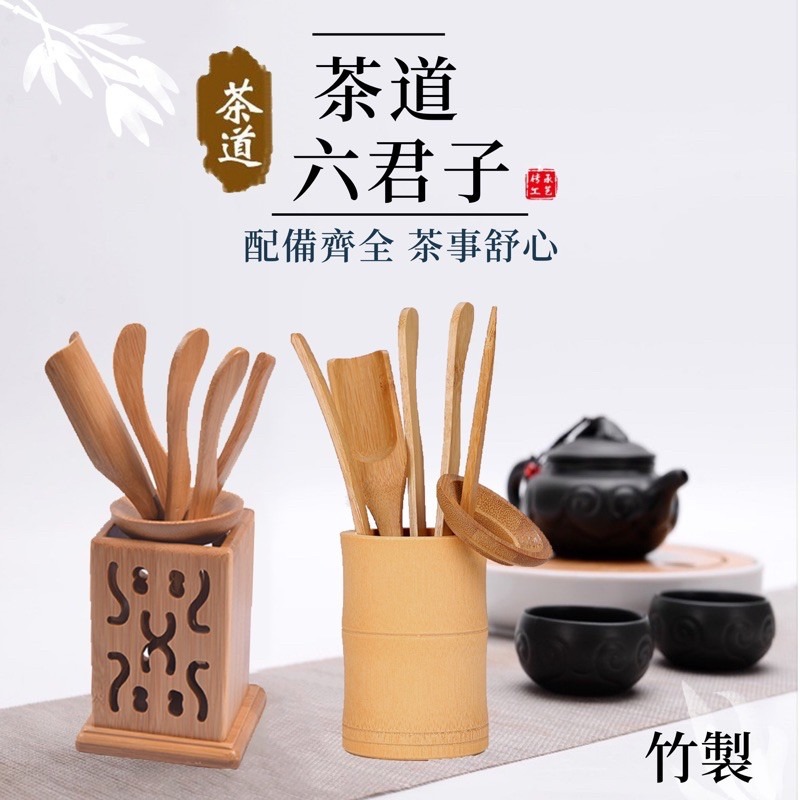 🍀台灣現貨🍀竹製 茶道六君子 六君子 六件套 茶具配件 茶道用具 泡茶用具 茶匙 茶葉勺 茶夾 茶針 茶漏 實木製作