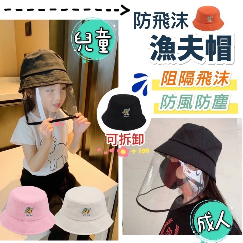 🍀台灣現貨🍀防飛沫漁夫帽 護遮罩 兒童款 成人款 飛沫唾沫防護帽 護目款 防曬黑色 擋風帽 帽子 隔離 防唾液飛沫