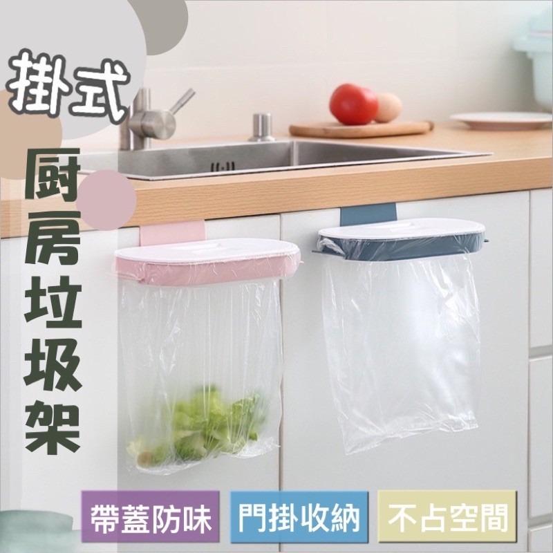 🍀台灣現貨🍀掛式廚房垃圾架 掛式垃圾桶 垃圾袋掛架 廚房垃圾架 垃圾桶掛架 垃圾桶 帶蓋垃圾桶 無痕廚房垃圾架