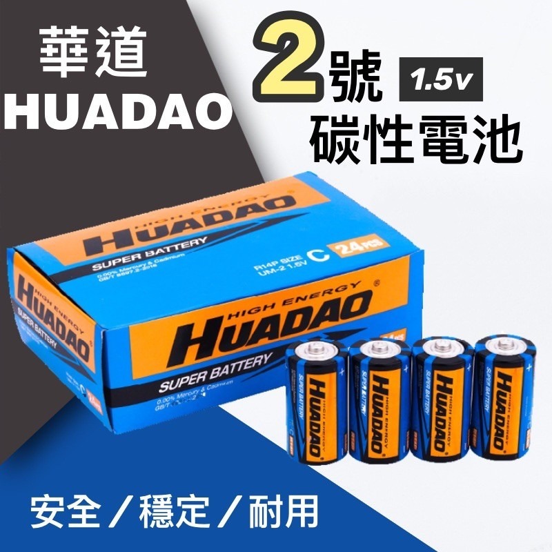 🔥買5送1🔥台灣現貨 2號碳鋅電池 2號電池 HUADAO電池 華道2號電池 1.5V碳鋅電池 鋅錳電池 無汞環保