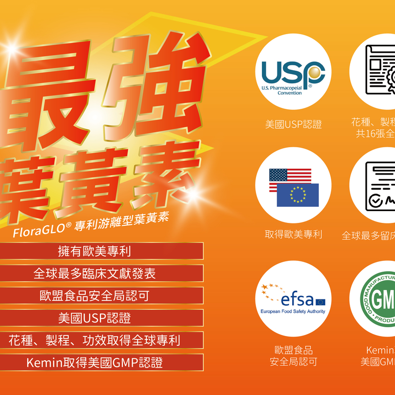 - 超高生物利用率: 100%純質,專利FloraGLO®葉黃素