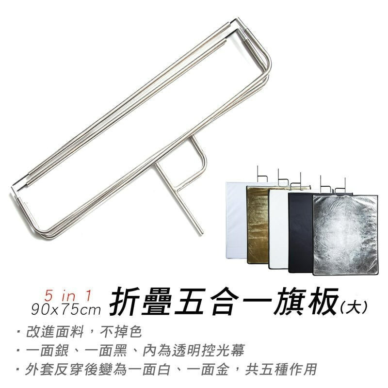 ‧ 內容物(依原廠為準):折疊旗板框x1、控光幕x1、黑銀白金四色套(一面為黑與銀、反穿為金與白)x1