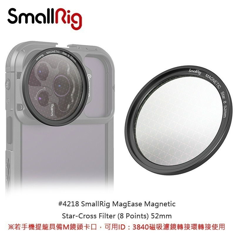 ‧ 它可以透過磁性方式牢固地固定在 SmallRig 磁性過濾器適配器環(ID:3840)上 ( ※※ 本品無包含磁性過濾器適配器環ID:3840 !! ※※ )