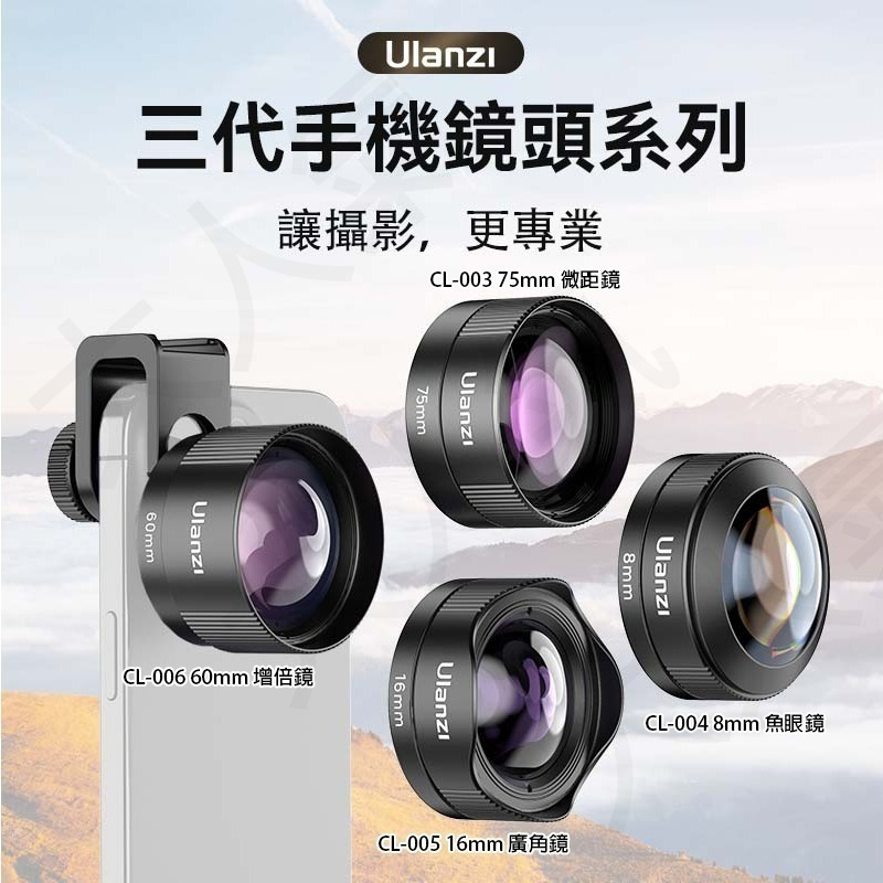‧ 型號:CL-003 微距鏡、CL-004 魚眼鏡、CL-005 廣角鏡、CL-006 增倍鏡