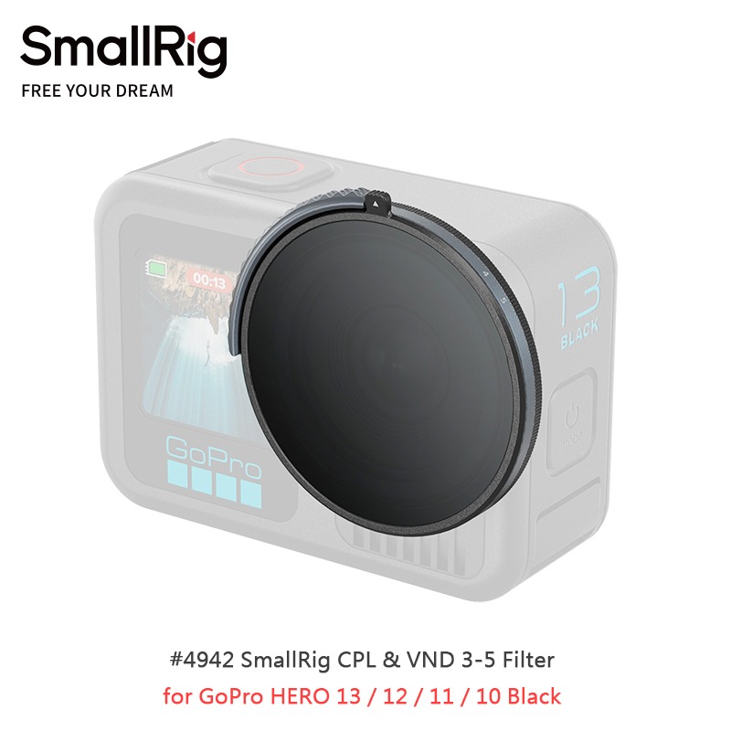 專為 GoPro Hero 13 / 12 / 11 / 10 Black 設計,可透過快速旋轉無縫連接到主相機。這款濾鏡採用雙 CPL 和