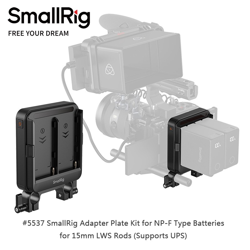 SmallRig 5537 型號轉接板套件專為使用 NP-F 系列電池的無反光鏡相機、監視器和其他裝置設計,可搭配 15mm LWS